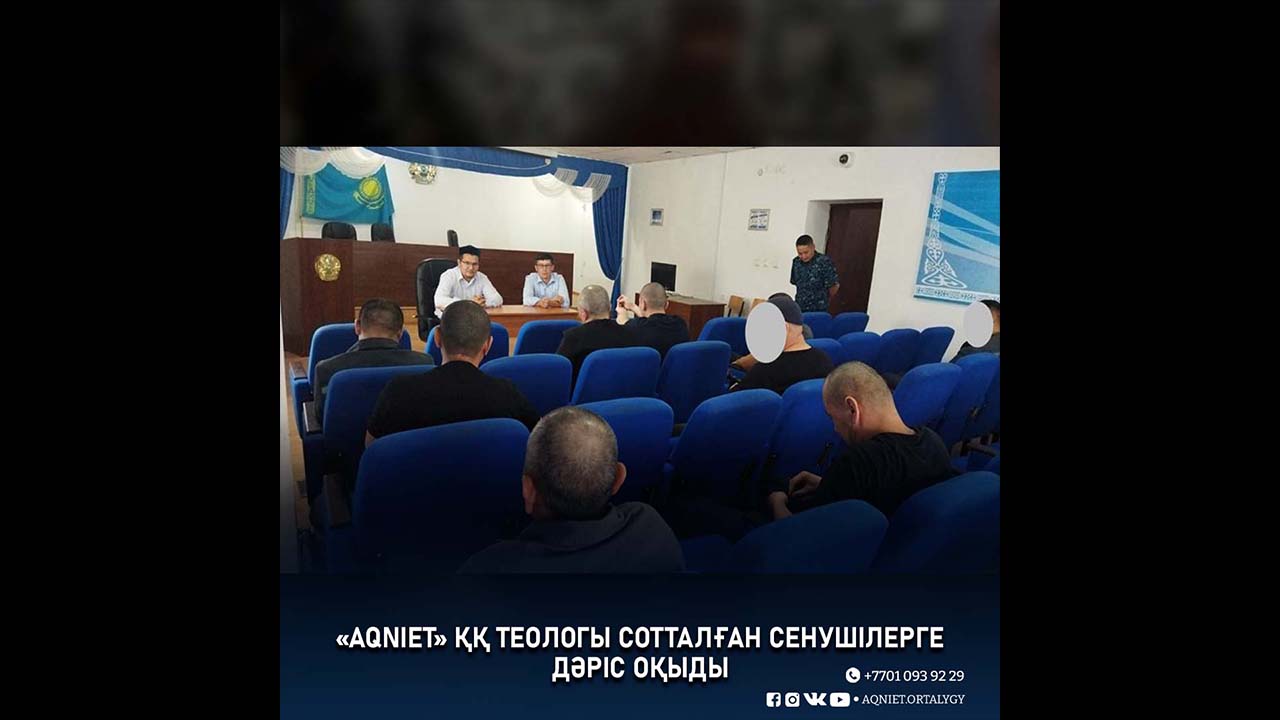 «Өңірлерде түсіндіру және оңалту жұмыстарын жүргізудің бірыңғай тетіктерін қамтамасыз ету» әлеуметтік жобасы аясында Маңғыстау облысындағы «Aqniet» ақпараттық-насихаттау және оңалту орталығы» ҚҚ теолог-консультанты Тулепов Азамат Нұғманұлы қылмыстық жазасын өтеп жатқан сотталғандар үшін «ГМ-172/10 мекемесі» РММ-де «Матуриди ақидасы - қазақ халқының хақ сенімі» атты тақырыпта дәріс оқыды.