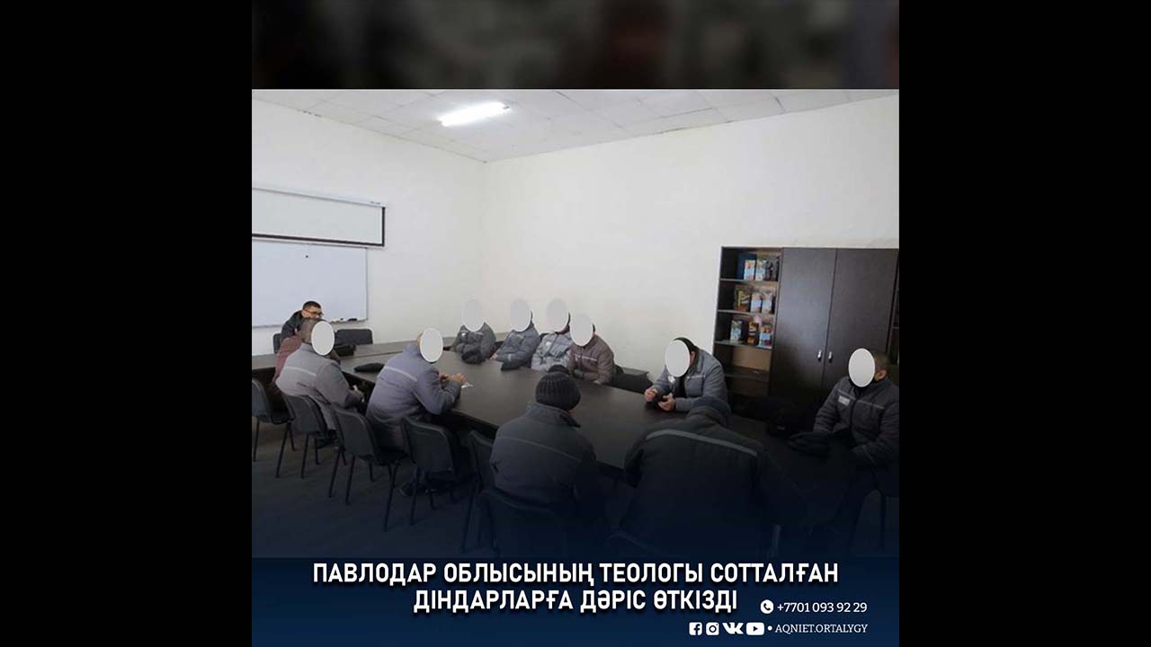 «Өңірлерде түсіндіру және оңалту жұмыстарын жүргізудің бірыңғай тетіктерін қамтамасыз ету» әлеуметтік жобасы шеңберінде Павлодар облысындағы «Aqniet» ақпараттық-насихаттау және оңалту орталығы» ҚҚ өкілдігінің жетекшісі Уныйбаев Ерлан Жиксимбаевич «АП-162/3 мекемесі» РММ-де қылмыстық жазасын өтеп жатқан сотталған діндарлар үшін «Уәденi орындау» ұжымдық теологиялық сабақ өткізді.
