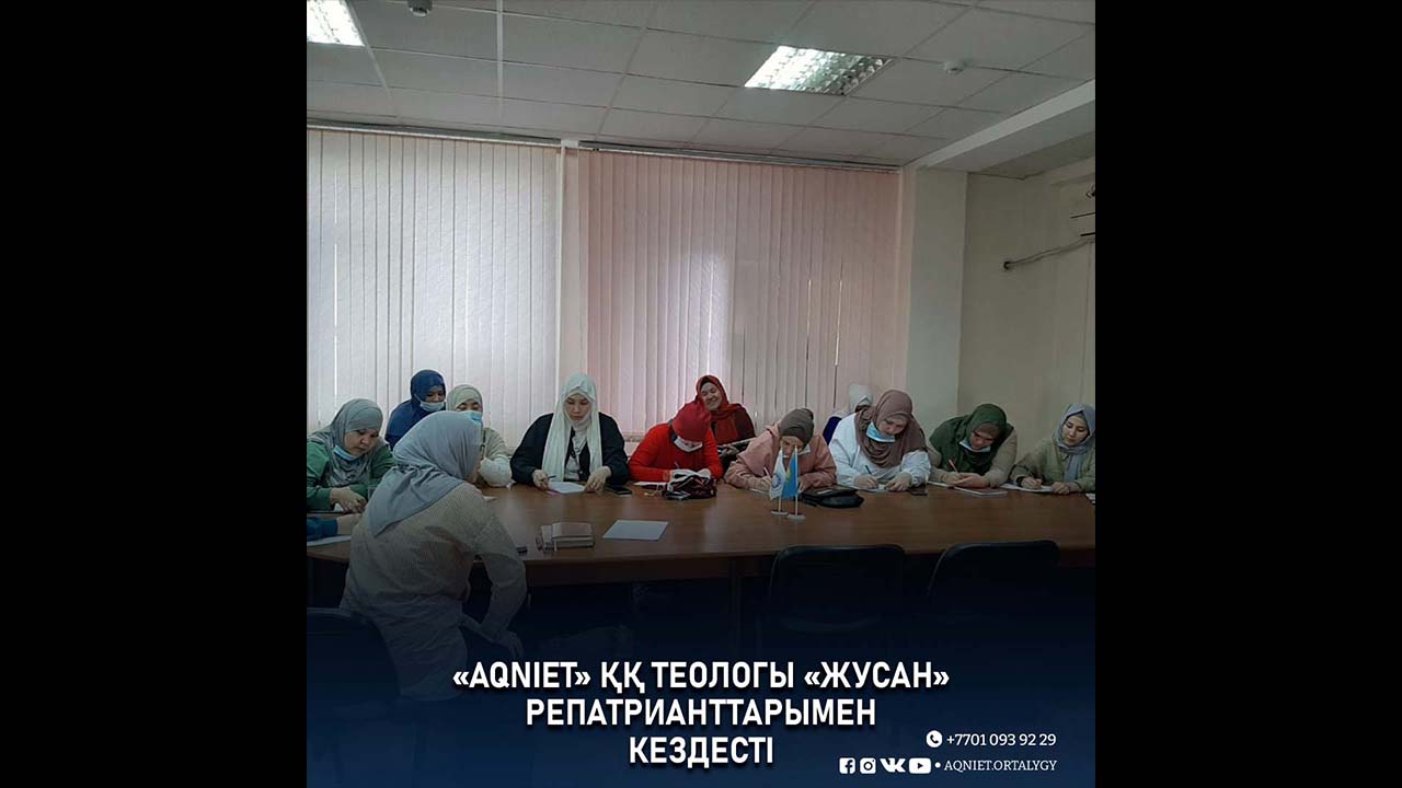 «Өңірлердегі түсіндіру және оңалту жұмыстарын жүргізудің бірыңғай тетіктерін қамтамасыз ету» әлеуметтік жобасы шеңберінде Батыс-Қазақстан облысындағы «Aqniet» ақпараттық-насихаттау және оңалту орталығы» ҚҚ өкілдігінің теолог-кеңесшісі Данаева Назгүл Медерқызы «Aqniet» гуманитарлық операциясы шеңберінде елге оралған азаматшалармен «Пайғамбар (ﷺ) ақидасындағы «Истауа» мәселесі» тақырыбында кездесу өткізді. Кездесу Батыс Қазақстан облысындағы «Ақниет» ҚҚ өкілдігінің кеңсесінде өтті.